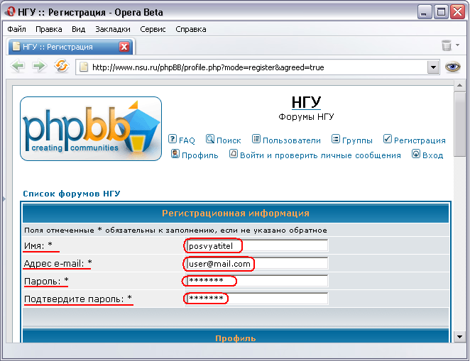 ссылке и в разделе "Регистрационная информация" заполнить поля