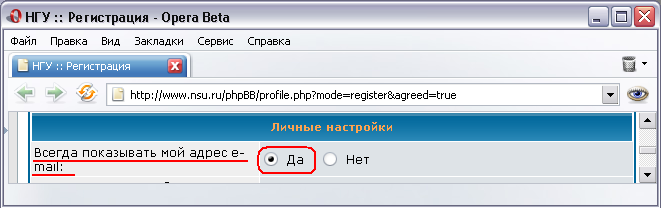 3. В разделе "Личные настройки"поле "Всегда показывать мой адрес e-mail" поставить галочку "Да"